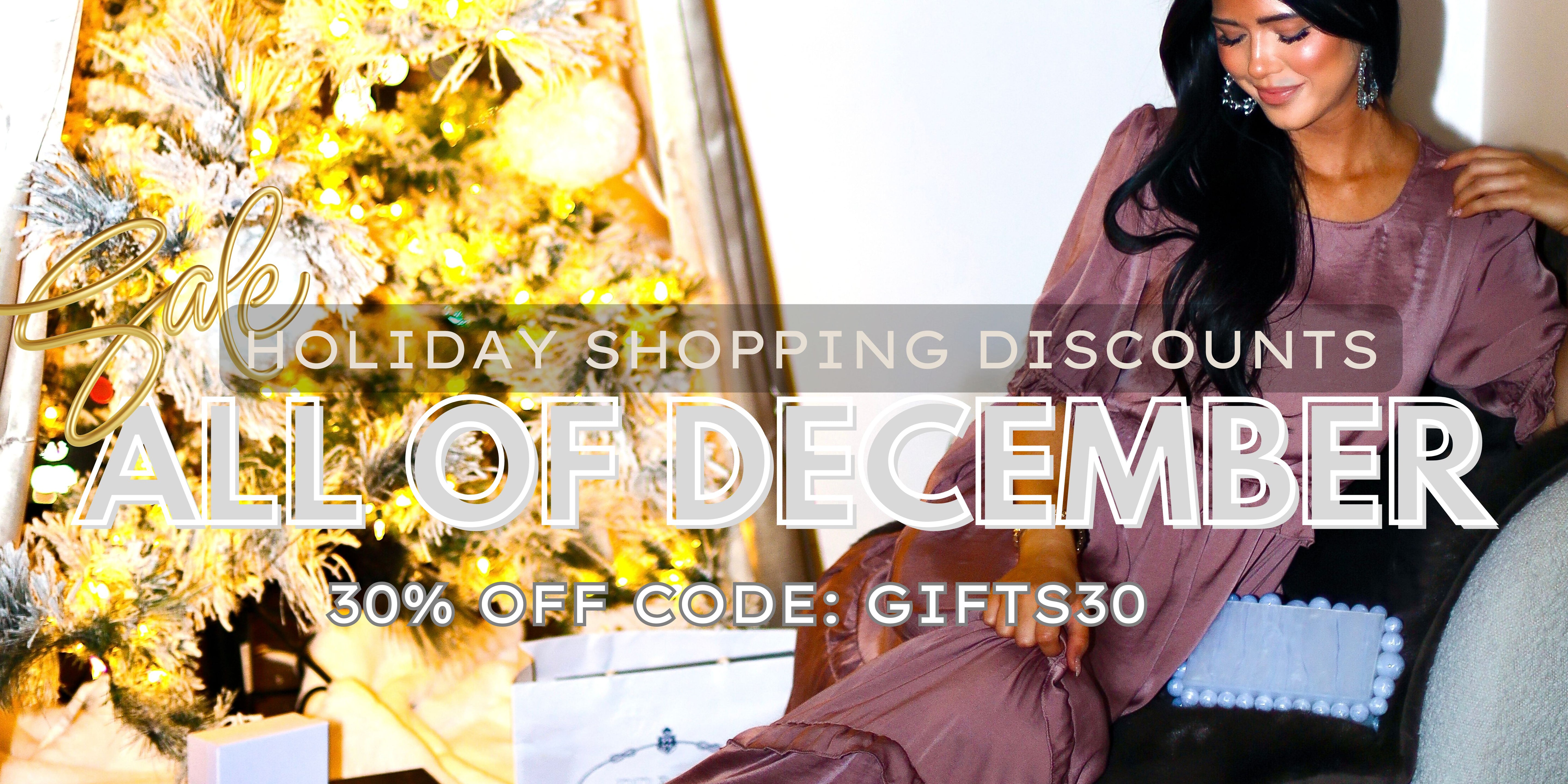 Shop the largest selection of modest clothing, perfect for gift giving and holiday wearing. Enjoy discounts all of December! Starting with 30% OFF EVERYTHING