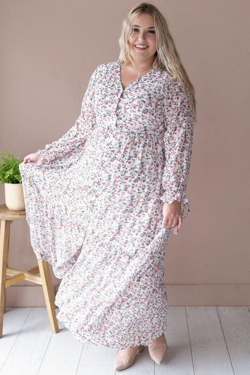 Today is all about gorgeous, flowy, floral elegance! This is another one we couldn't imagine not having in our collection! The Luca has all the best features, to include, a soft v-neckline, functional button front bodice, long puff sleeves with the most darling tassel cuff detailing and last but not least the most gorgeous tiered ruffle skirt! Trust us, the Luca is a must have!