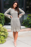 Wow this dress is beyond stunning! Our Lydia Dress has left us speechless! From the detailed lace, to the pretty scallop detailed bell sleeves to the beautiful light blue color, this dress has it all and more. This dress is also fully lined. You are going to get endless compliments on this dress so you definitely need to add it too your wardrobe!