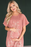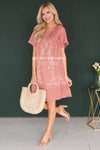 Add a little boho chic to your wardrobe with this adorable new dress! We are in love with all the simple details this dress has to offer! Deep Plum dress features a shift style fit, a lace and line detailed yoke, 1/2 length sleeves and beautiful ivory embroidered detailing. This dress is also lined.