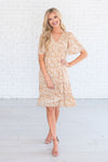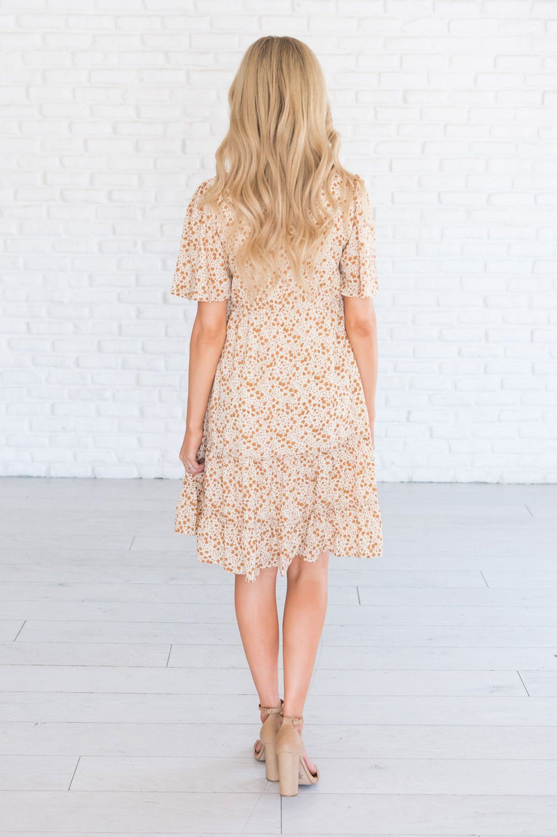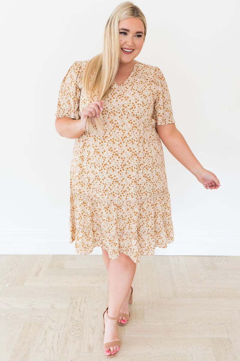 The Athena is our newest floral, this one is bound to take your breath away! We love the lovely color combo with the delicate mini floral. The soft v-neck and short flutter sleeves, babydoll fit and last but definitely not least is the feminine tiered skirt!