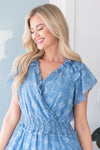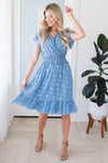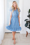 Let us introduce you to your new favorite dress! The Dawn is the most beautiful modest gem, we simply can not get enough! Its features include the most darling dusty blue color, beautiful blue floral embroidery throughout, thick smocked waist, a wrapped V-neck bodice, and ruffle detailing on the neckline, skirt hem, and sleeves! It is seriously a must have for summer and fall!