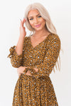 We hope you love animal print as much as we do! Say HELLO to our new Jean dress! The first thing we LOVE our customers doing is making a fashion statement wearing one of our fashionable always modest dresses which we are positive you'll do just that ;) This dress features cute 3/4 tie sleeves, soft modest V-neck, fully functional bodice button up, smocked waistline, and as always modest below the knee skirt! Get yours today before they