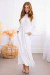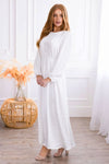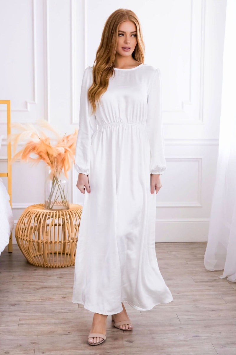 We have been dreaming of an all satin temple dress for ages now and are so happy to say we have finally delivered! Grab this modest beauty before they are gone! Featuring a round neckline, long sleeves, elastic waistline and flowy skirt. *Please note this dress is not lined