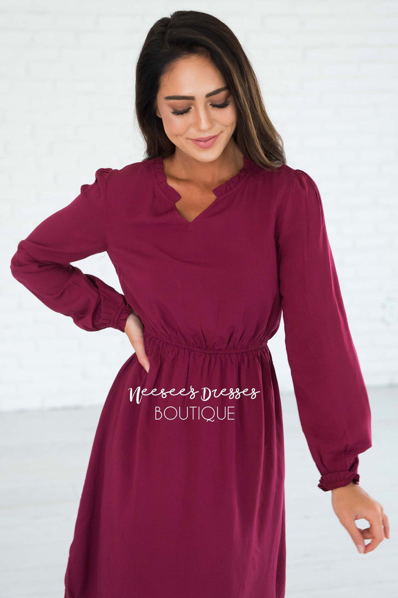 Add this adorable new midi to your cart it is seriously breathtaking. The Gabrielle features the cutest ruffle detailed neckline, long sleeves, and elastic waistband, and a feminine flowy skirt! Get the Gabrielle today!