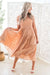 This soft beige color and the bright floral are the perfect duo! The floral includes bright shades of pink, purple, teal, green, yellow, and ivory! The maxi style, cap sleeves, and pleated waistline creates a modest and trendy design!