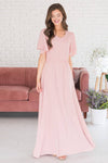 Elegant, classy and oh-so-beautiful! Our timeless Chloe Dress is now in a textured fabric in the beautiful and extremely popular color mauve pink. It features an elastic waistband, soft V neckline, and gorgeous tiered fluttery sleeves. Wear it to Sunday Church, or add a flower crown or belt for the perfect bridesmaids dress!