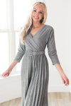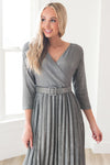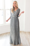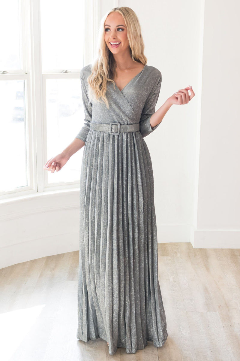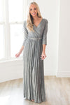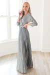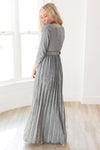 The new Kaytee has all the very best features, we are completely obsessed with this gorgeous shimmering beauty! Features include a crossover bodice, 3/4 length sleeves, pockets, pleated maxi length skirt and the perfect belt accessory! Get yours today!