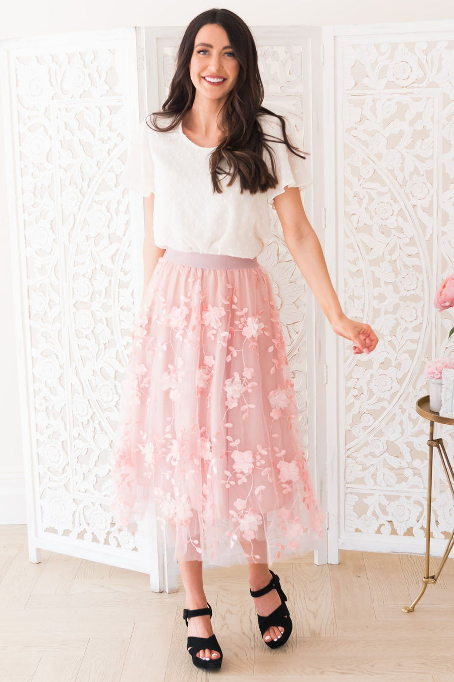 The Twirl Away Modest Skirt is bound to make your wishes come true! This delicate feminine tulle skirt has stolen our hearts! Featuring an elastic waist, gorgeous velvet polka dot detailing and is fully lined. Get yours today!