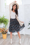 Navy & Cream Floral Chiffon Skirt