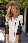 WOW! How cute is our new Finley dress. This is screaming HELLO FALL. The Finley features a round neckline paired with a functional tie neck, multi pattern puff sleeves, and a functional tie waist which adds shape to the straight fit. Spice up your wardrobe with this midi today, but hurry before it is gone!