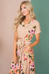 We are absolutely in love with our gorgeous floral Brisa dress! This handkerchief dress is going to give everyone a flattering silhouette. Sophisticated, Functional and Fun! This dress features a round neckline and short sleeves and elastic drawstring waist. You are going to need this piece added to your dress collection!