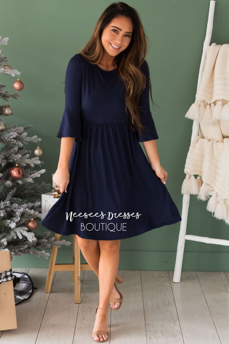 You will have this beautiful dress for years to come and continue to grab for it again and again! It's soft, gorgeous and comfortable too. The Naomi is a rich navy and features 3/4 length bell sleeves and a gathered waist.