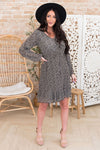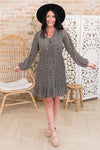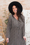 The gorgeous feminine Emory has stolen the show! We are loving the sky blue leaf print, long sleeves, functional button front bodice, drawstring waistline and flowy ruffle hem skirt. Get yours today, these beauties will go fast!