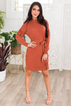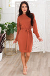 Wanting that perfect dress for literally any outing you have coming up? Look no further the new Jessenia, it's going to be your new go-to! This dress has all the perfect details that everyone will love. Features include a classy banded collar neckline and hemline, long dolman puff sleeves, belt tie waist and the most stretchy cozy soft ribbed thermal material ever!
