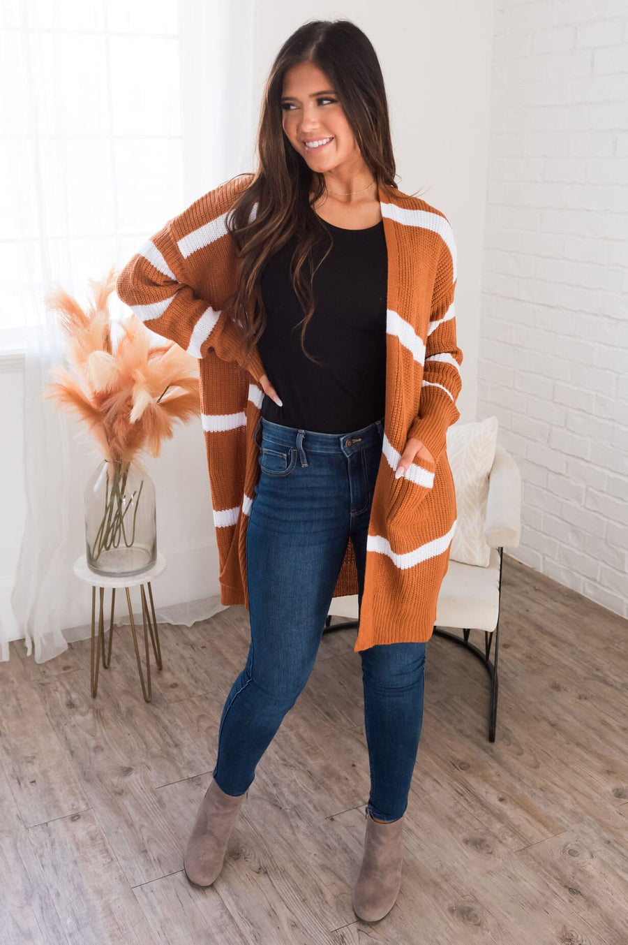 We hope you love striped cardigans as much as we do! If so, you need this new arrival we just added! Featuring the gorgeous taupe & ivory stripes, super soft material, and two pockets! This beautiful cardigan is the perfect piece for any wardrobe, make sure to get yours soon!