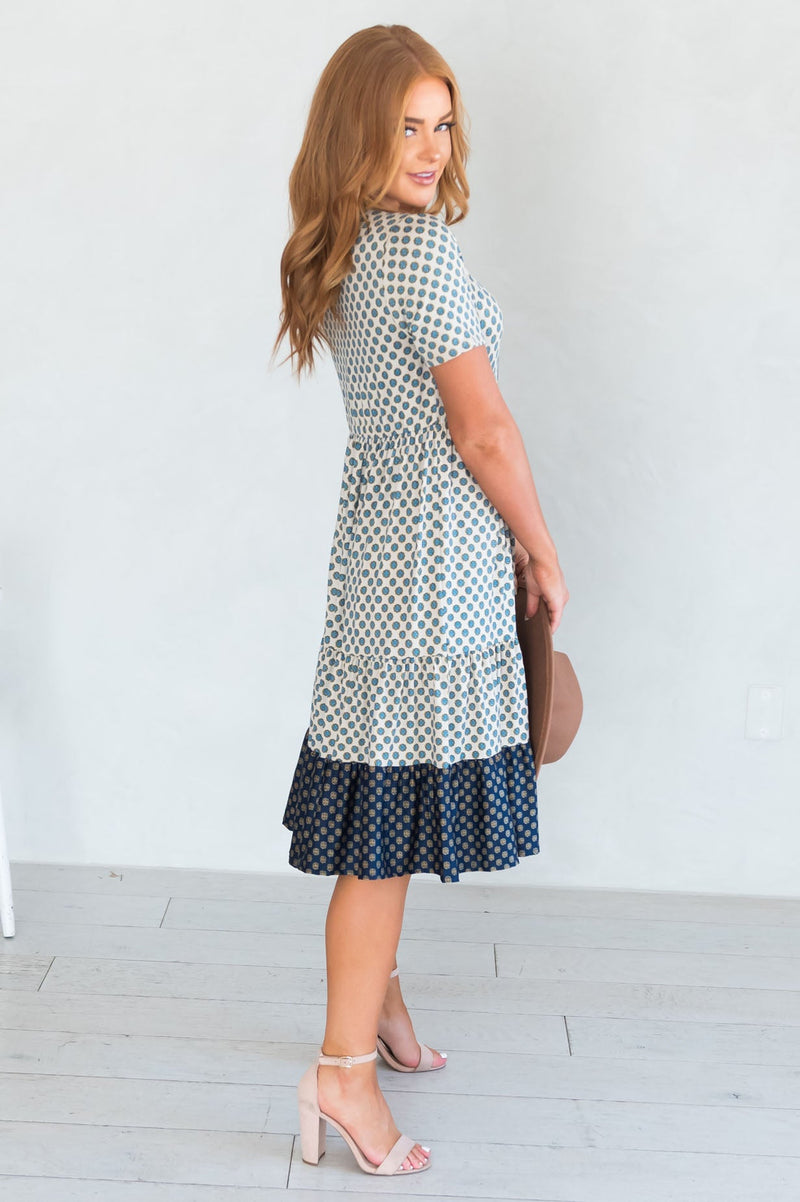 This dress screams bohemian, we love the gorgeous block silhouette style! The lovely color combination featuring a gorgeous medallion print, it is simply a must have! Features include short sleeves and our favorite flowy ruffle hemline! Get yours today!