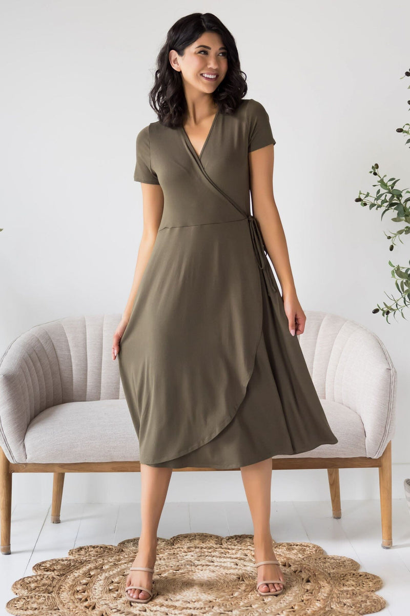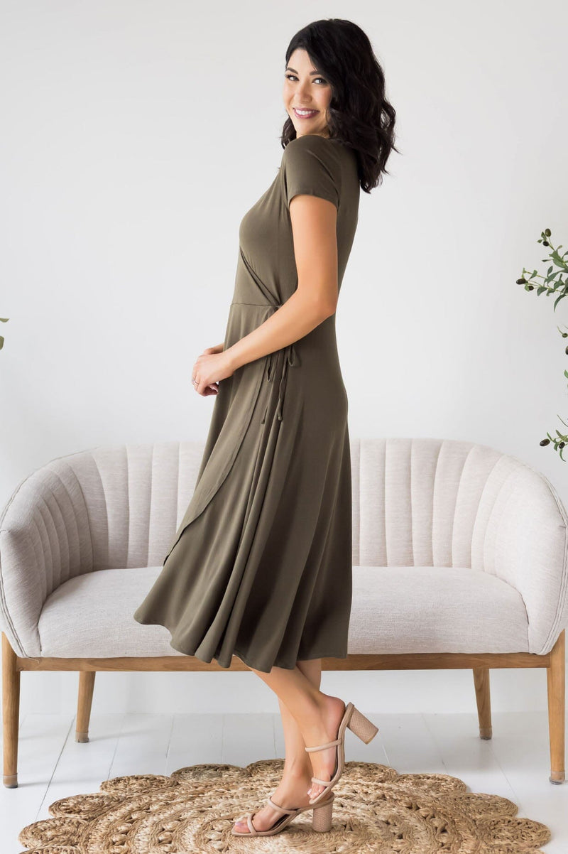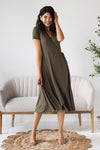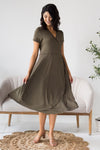 The Rooney radiates complete elegance and class! This simple, yet stunning dress has a beautiful tie waist and flowy skirt! The perfect for Fall olive color and short sleeves are perfect to wear solo or pair with your favorite sweater!
