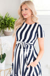 Our gorgeous Amy is the perfect way to celebrate Spring and Summer! The material is super soft, a round neckline, an adorable tie waist, short fitted sleeves and pockets! We promise this one is going to go fast! So get yours added to your wardrobe!
