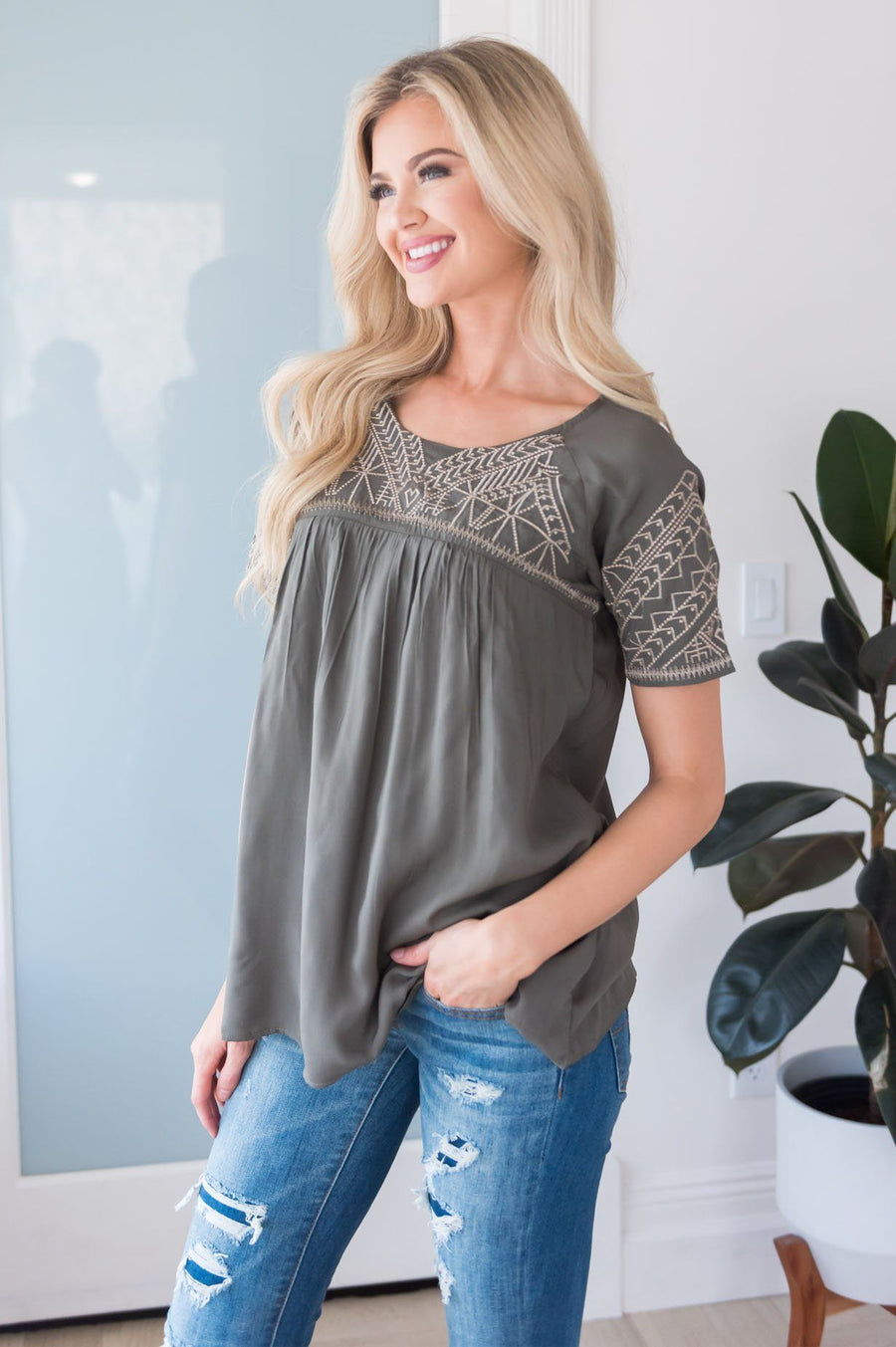Sold outDrift Away Embroidered Modest Blouse Tops vendor-unknown Drift Away Embroidered Modest Blouse Tops vendor-unknown