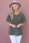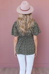 This delicate blouse is perfect day or night! Featuring a smocked bodice that creates the softest feminine touch! This dark sage floral blouse also features half length flutter sleeves. Trust us when we say you are going to want this one in your wardrobe!