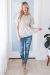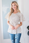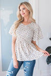 This delicate blouse is perfect day or night! Featuring a smocked babydoll bodice that creates the softest feminine touch! This ivory colored floral blouse also features half length flutter sleeves, and delicate green and copper floral print throughout! Trust us when we say you are going to want this one in your spring wardrobe!