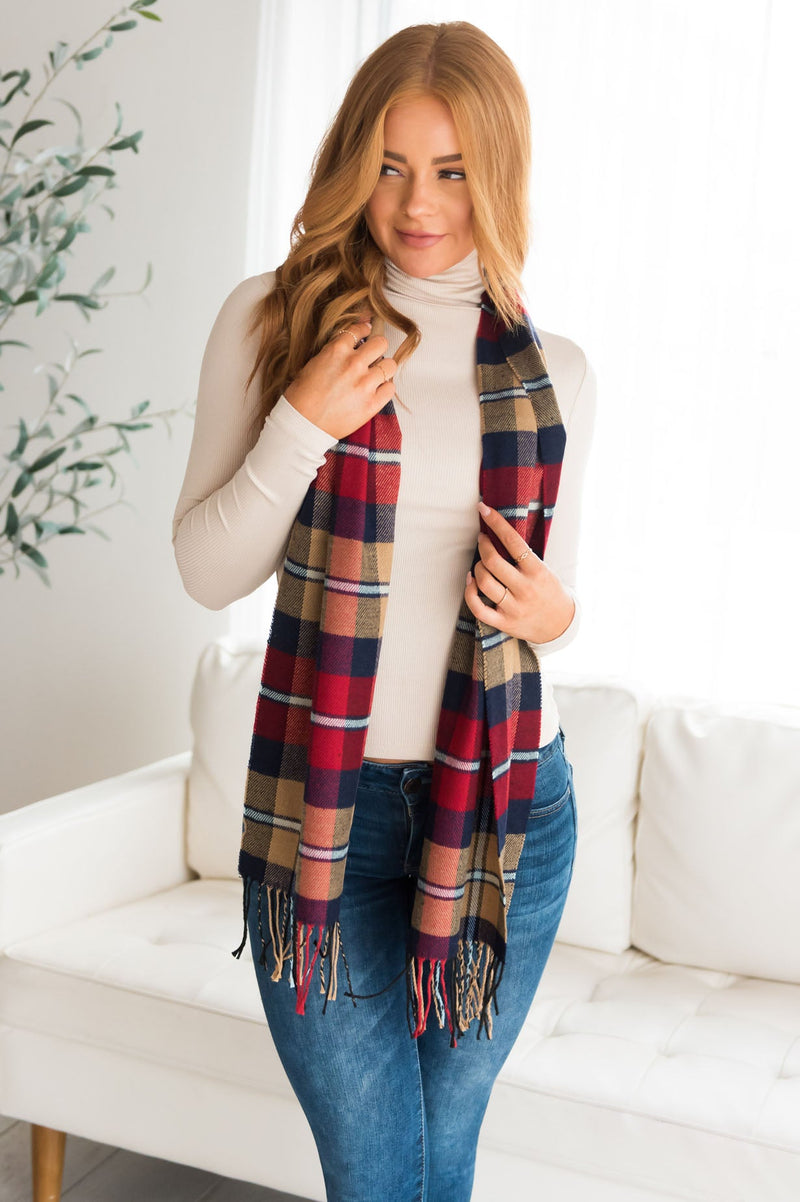 Stay warm and cozy this season in our new favorite scarfs! This scarf features super soft feel in the perfect color for Fall and a fringed edge!