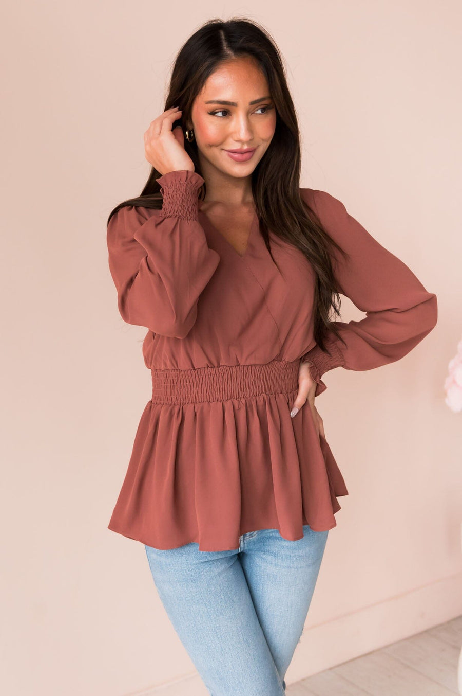 New Friends Modest Peplum Top