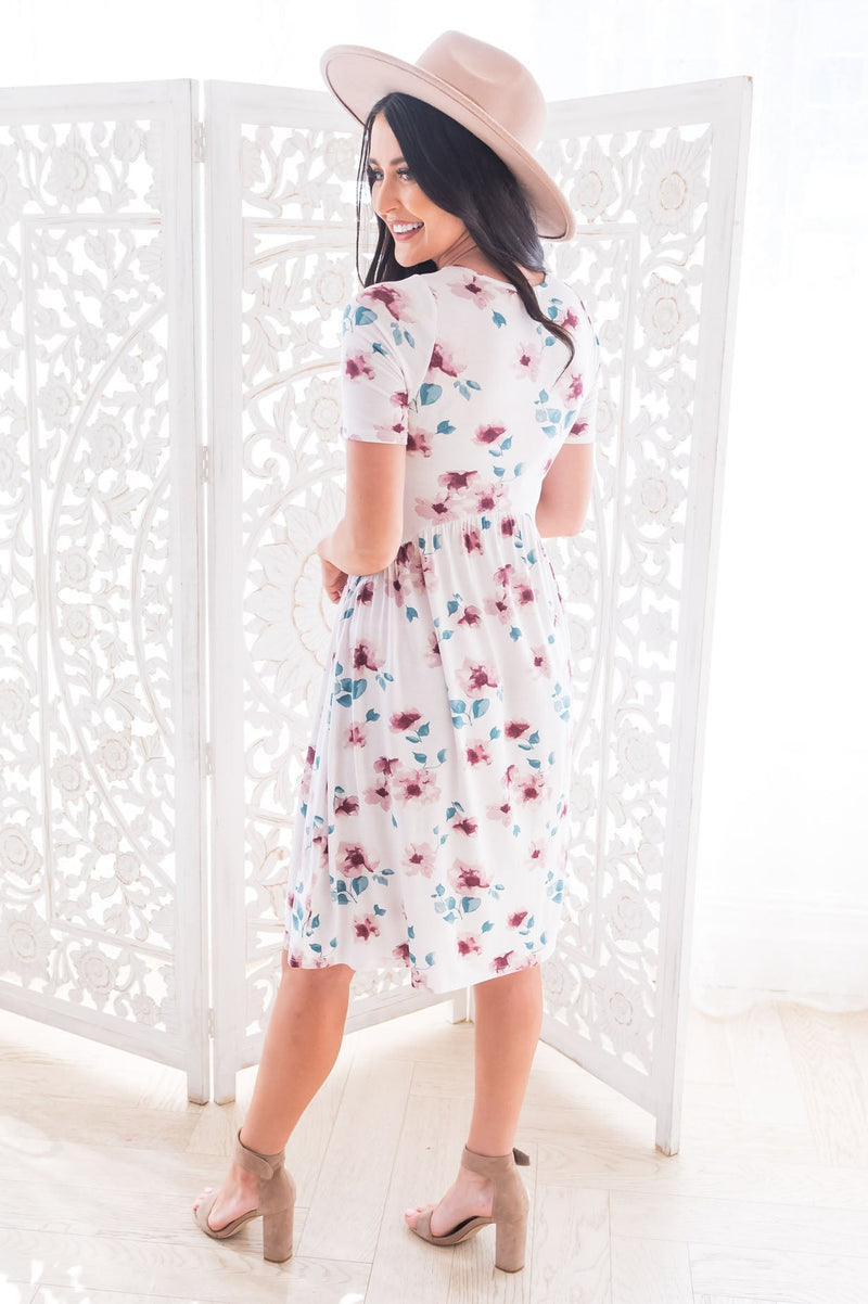 Allow us to introduce you to your New favorite dress! The Prim, is everything you could want in a dress and more! Featuring lovely flowy skirt with a drop waistline, feminine floral print in a light weight airy material, perfect for layering and short sleeves. This is your next must have!
