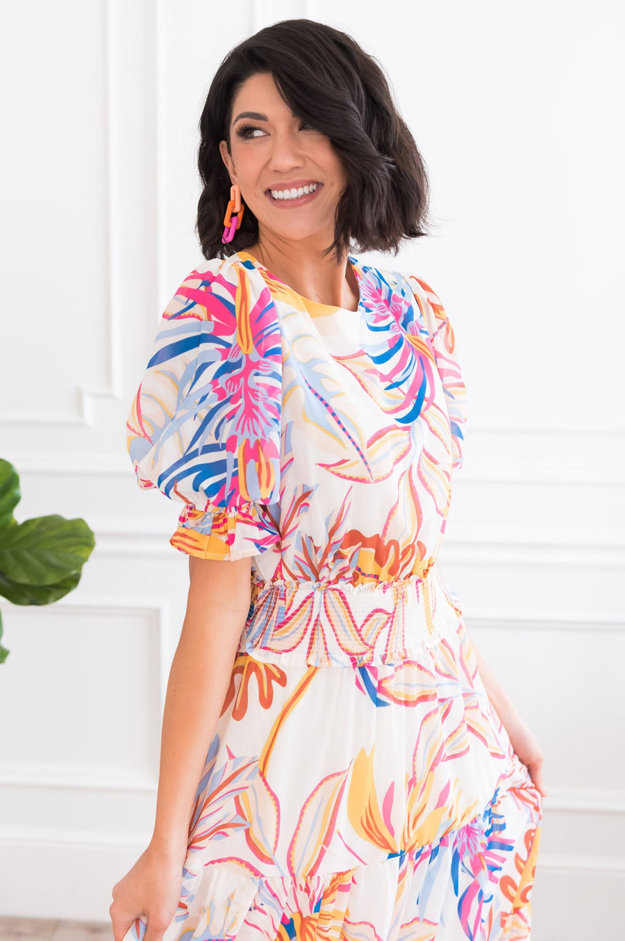 Say hello to our newest lace beauty! The modest Elza has taken our breath away! Features include flattering babydoll fit, short sleeves and the most beautiful lace overlay we have seen! This is bound to be the perfect Easter dress, get yours today!