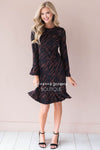 Stylish, modest, lovely, all the best things describe the perfect New Marisa dress! Featuring a shift style cut with a gorgeous ruffle hemline, a round neckline and long bell sleeves. This gem is perfect for business or casual attire, we simply can not get enough! Get yours today before they are all gone!