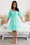 The dreamiest of dresses has just arrived! The Hylie is the perfect dress for warmer Summer days! Our lovely mid-length dresses always sell out fast so be sure to add to cart now! Features include, 3/4 length sheer puff sleeves, elastic waistline and flowy mid-length skirt. We know you're going to love it!