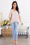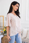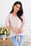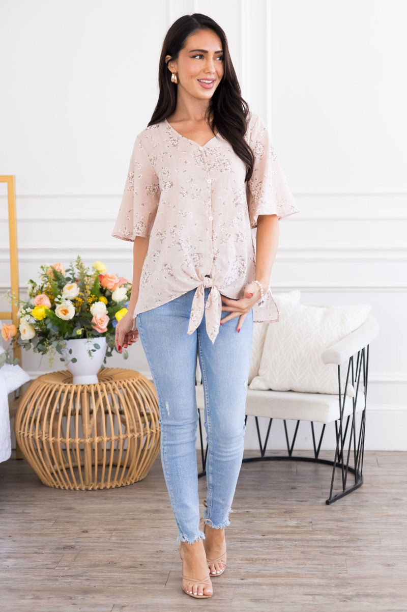 The new Photo Ready Top is so soft, so cute, and ready to pair with your favorite jeans or tucked into a skirt for your Sunday church outfit. Features a faux button front, gorgeous floral print, half length flutter sleeves and the most precious tie detailing. Grab yours today!