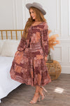 Getting ready for Fall in the sweetest patchwork print Scout dress! Featuring a modest round neckline with feminine tassle detail, long flowy sleeves, smocked waistline and lovely tiered skirt! This dress is perfect for every occasion!