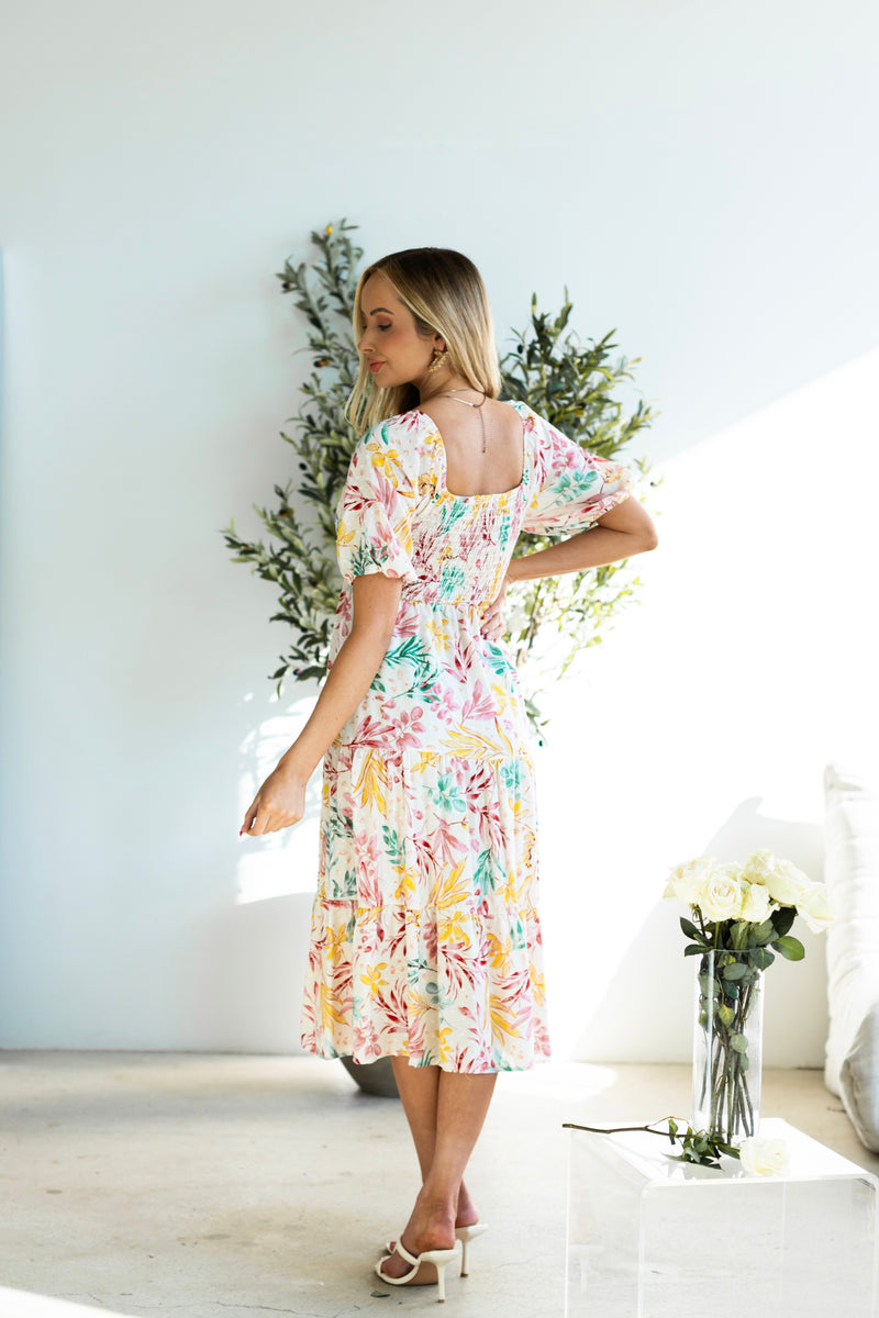 The dreamy Annelaine is here and we couldn't be more thrilled! Featuring a gorgeous feminine floral, short puff sleeves, flattering smocked bodice and a tiered flowy skirt. Get this elegant beauty today!