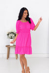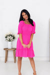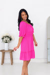 It was love at first sight when we saw the Cincinnati! This sweet textured dress is one you need to add to your wardrobe now! Featuring an lovely round neckline with half length sleeves, double banded elastic waistline and the perfect length ruffle hem skirt. Get yours today, we promise this one will go fast!