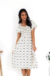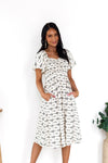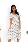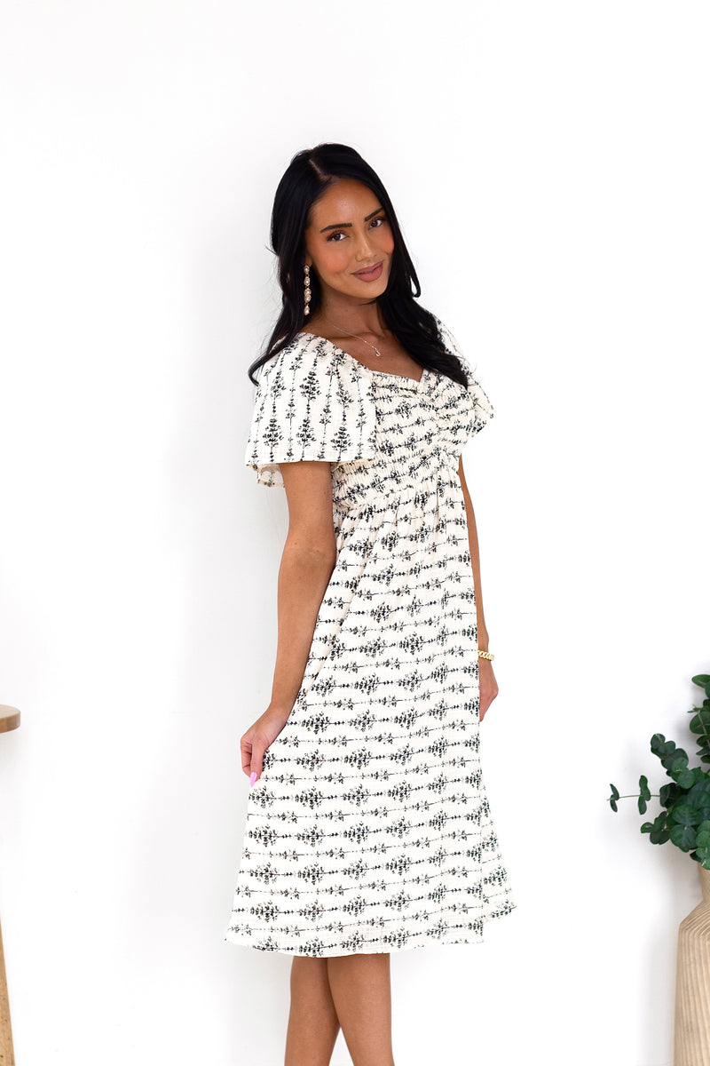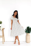 The Emiliana is about to be your new favorite dress! This beautiful little mini floral dress has many stunning features, such as a smocked sweetheart neckline, an elastic waist, short flutter sleeves, and a flowy perfect length skirt! This dress is also lined, an absolute must have!