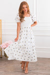 The Ileena swooped in and stole our hearts! The lovely smocked bodice, short puff sleeves and tiered skirt are absolute staples for your Spring wardrobe! We are so in love with the delicate embroidered details, get yours today!