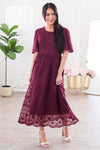 The endearing Karline is so classy and a must have for your wardrobe! You will be grabbing for this lovely dress again and again! Featuring the most beautiful lace overlay, half length flutter sleeves and the perfect length skirt.