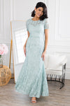 Our jaw is on the floor and we know yours will be too! Meet our new Jasmine Dress. Be the star of your Prom in this stunning, modest, full lenght lace dress with just the right amount of sparkle.
