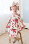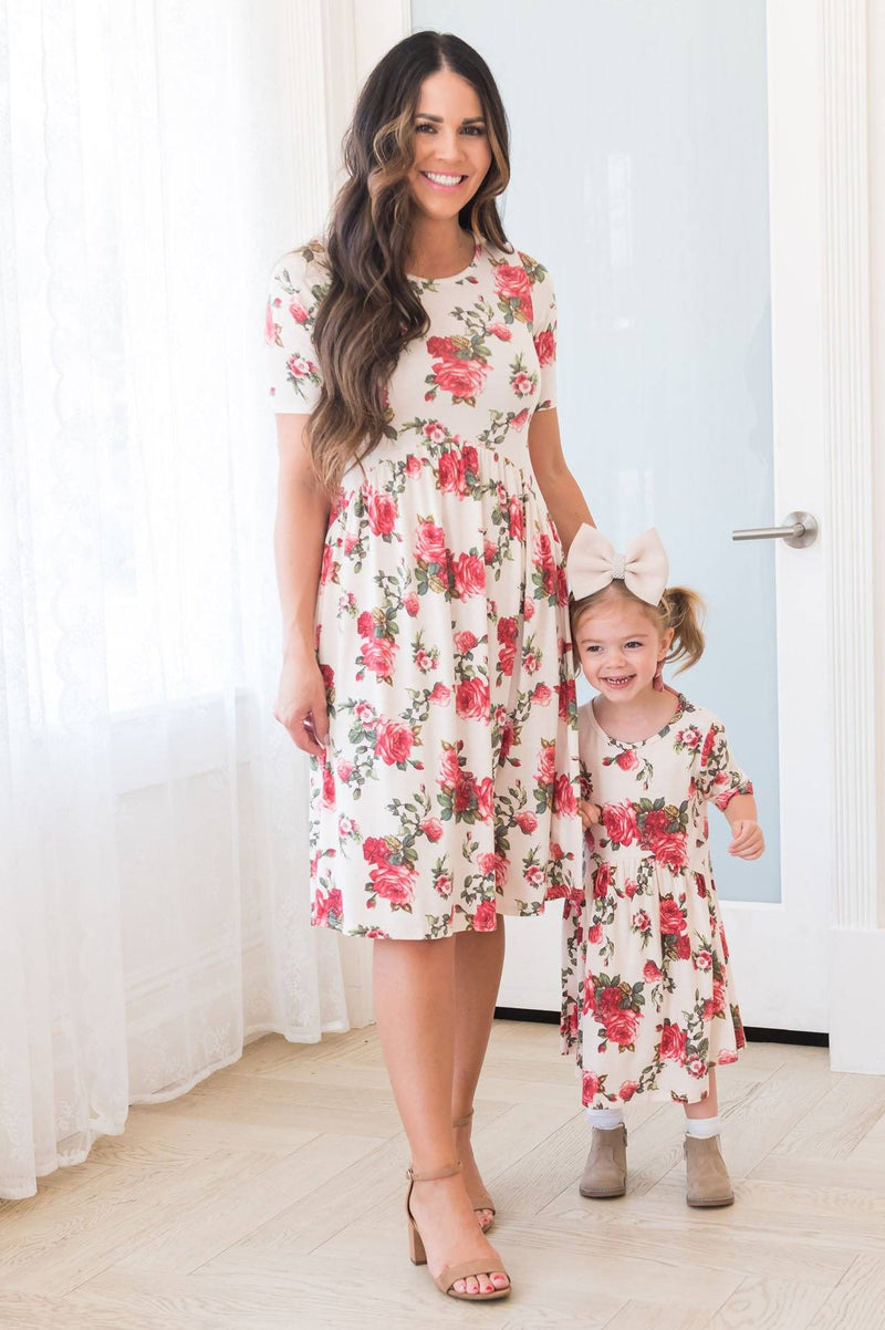 We've never been so excited to announce a new arrival than we are announcing our Little Melynda!!! She can twirl, she can dance, she can be silly all while feeling whimsical in this beauty, mommy can join her of course! Featuring short sleeves, lose-fit drape waistline, round neckline, GORGEOUS floral! These are very limited stock so be sure to add to your cart ASAP!