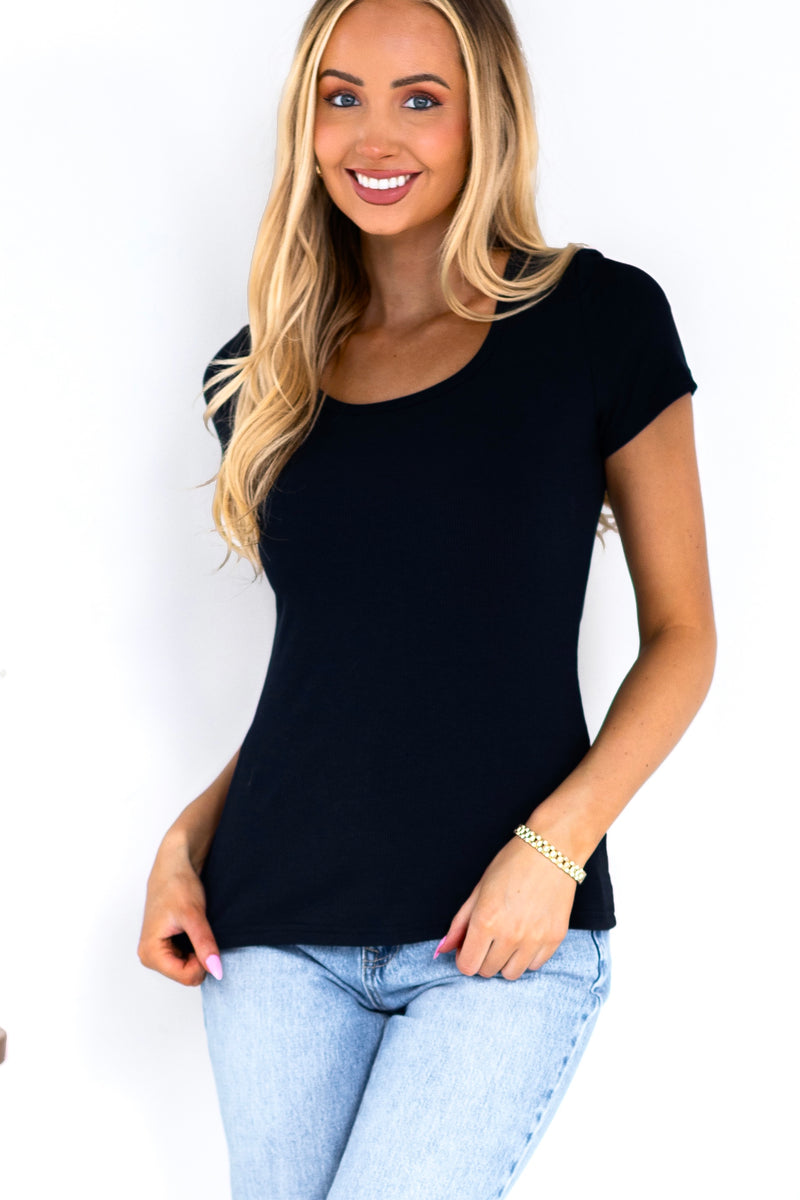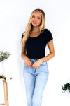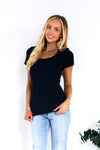 The Ever So Charming Scoop neck top is everything! We love the flattering fit, classic white color, ribbed fabric and fitted shirt sleeves. Grab yours today and start pairing with your favorites skirts and pants today!