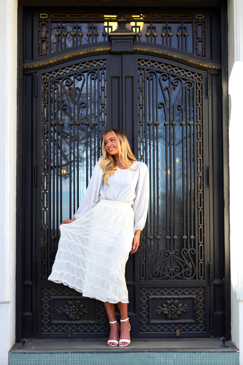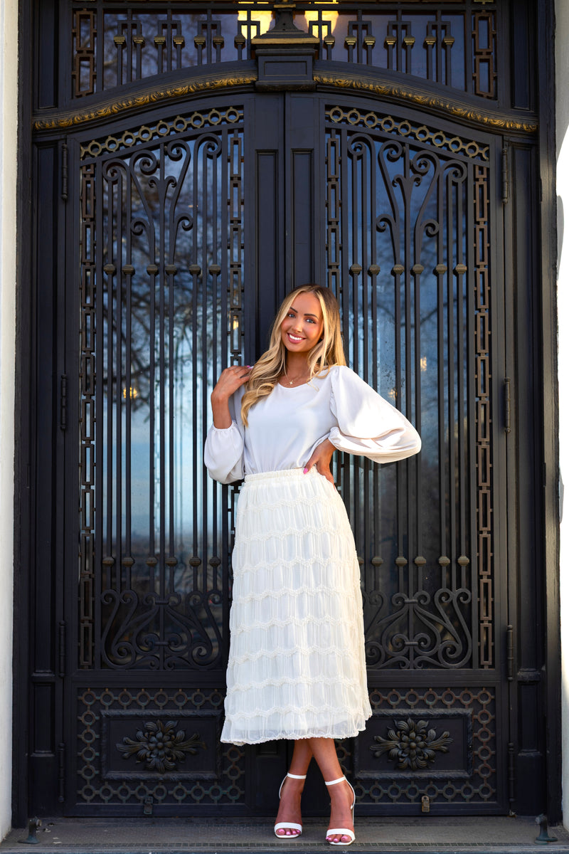 We can't get enough of our newest Falling For Love Skirt! They are so flattering on every body type, and are perfect for any occasion! They have all the best features, such as an elastic band waist, perfect maxi length and the prettiest textured material.