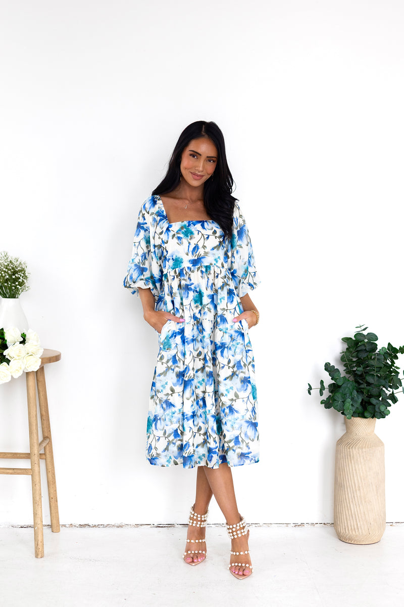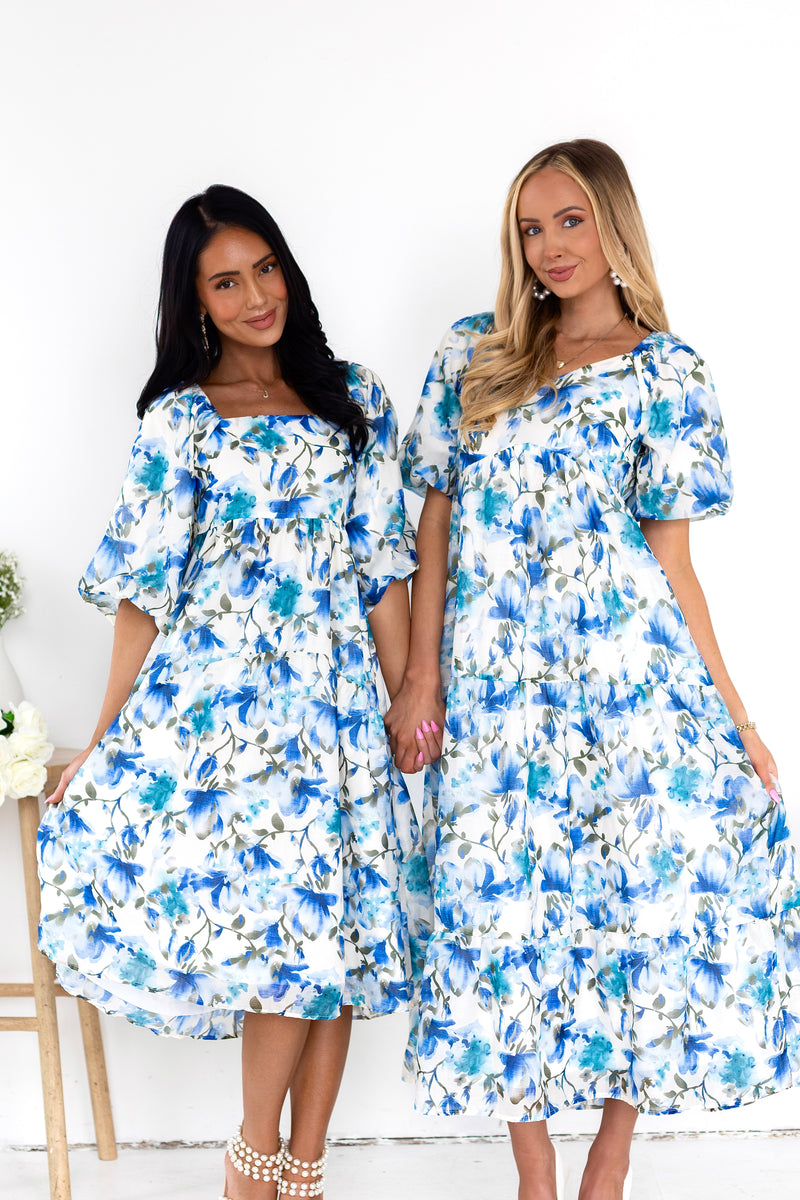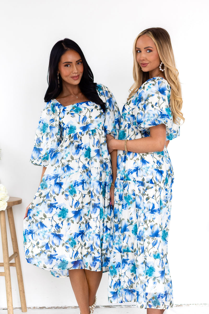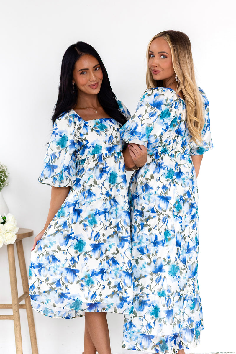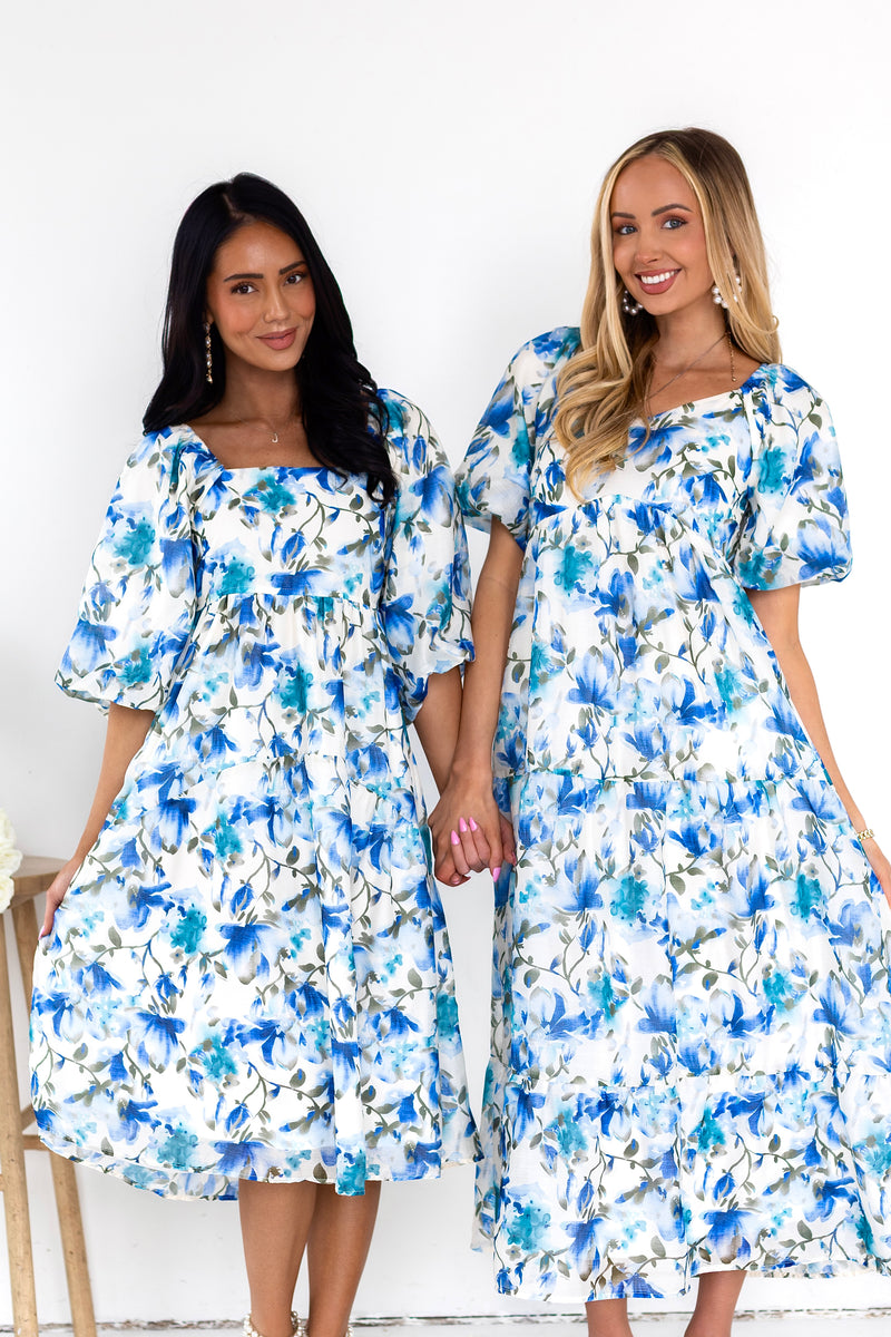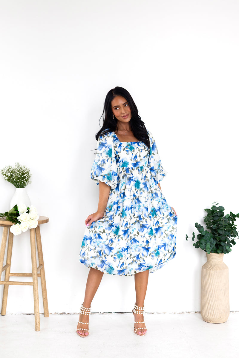 You'll love the lovely Isela as much as we do! This beauty has all the most elegant features to include a modest squared neckline, half length puff sleeves, pockets and we are obsessed with the feminine flowy skirt! Get yours today!