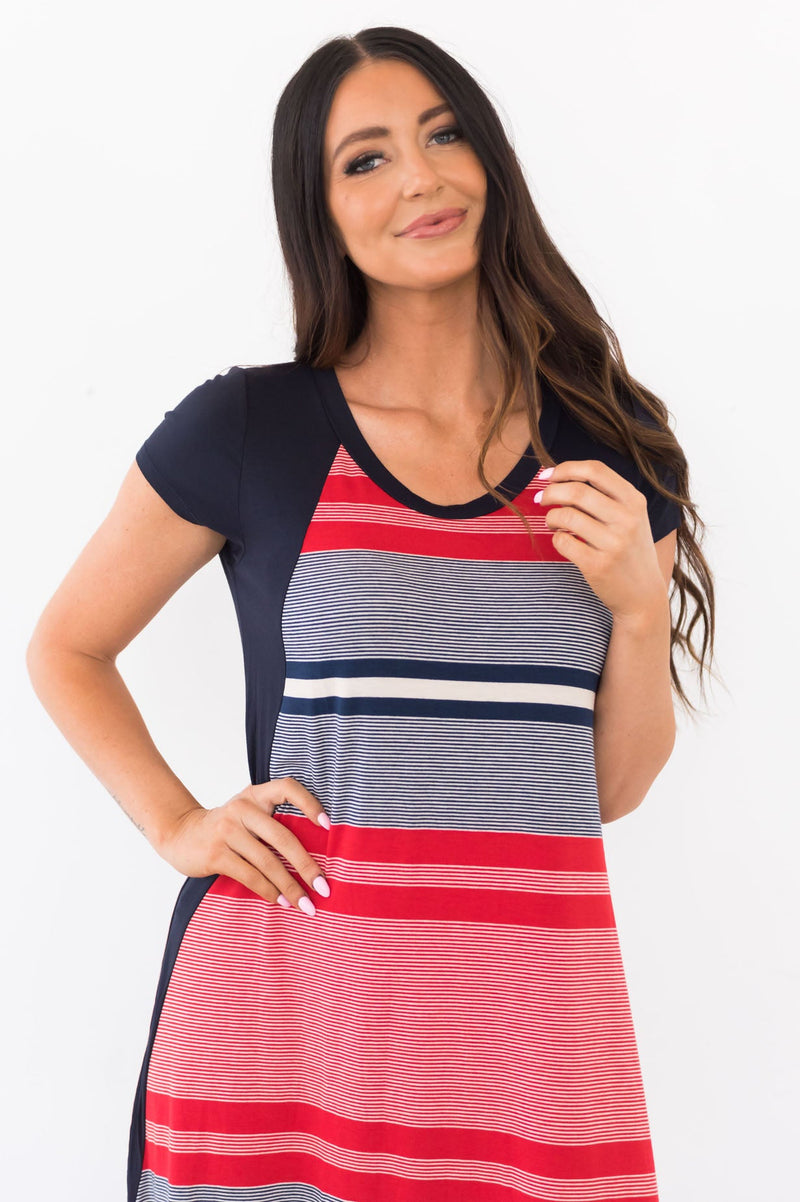 We have found you the perfect T-Shirt style maxi! This dress is what dreams are made of! Super comfy and stylish! This dress features a modest high round neckline, short sleeves, relaxed maxi t-shirt style skirt. Get yours today because they will not last long.