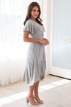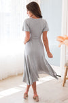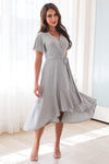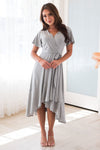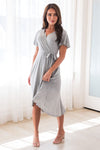 Our absolute new favorite! The Joelene is perfection, this gorgeous tea length dress features a modest cross-over bodice making this beauty nursing friendly, short flutter sleeves, cozy soft stretch material, belt tie waist and last but not least the darling faux wrap flutter skirt! These will go quick, get yours before they are gone!