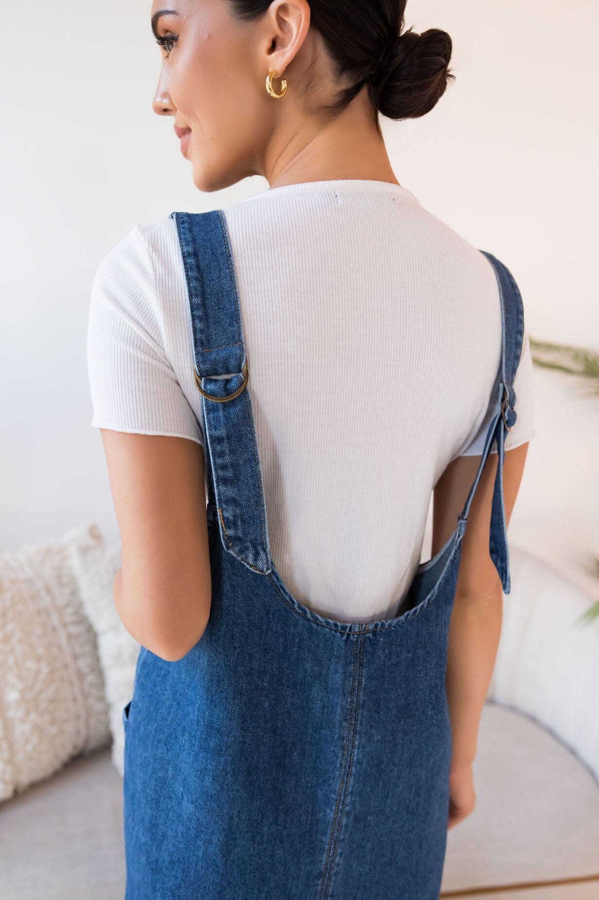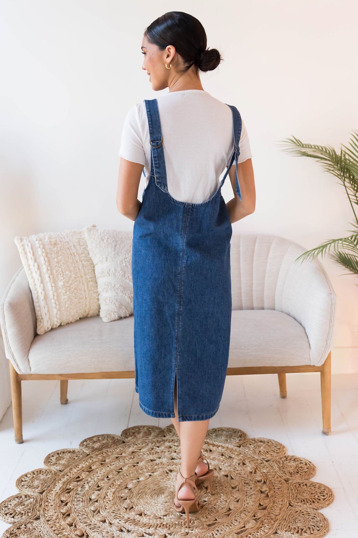 This chic denim jumper dress is perfect to wear all year long! We love the trendy indigo blue color! This dress can be paired with any accent color. Featuring a v-neckline, front pocket details, and of course overall straps that give you a fashionable nursing friendly option! Get yours today!