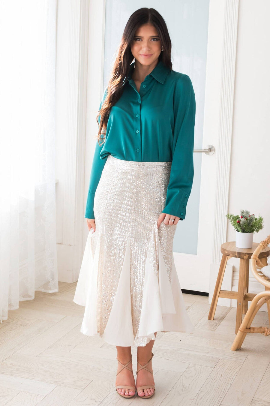 We are seriously in love with this darling feminine ruffled tulle skirt! It is the perfect modest length, has delicate sequin embellishments, beautiful tiered details, a perfectly flattering fit with it's elastic waistline, plus the most stunning nude color! Get yours today!