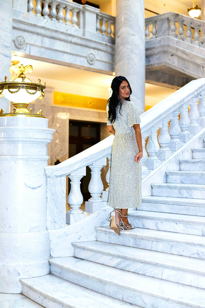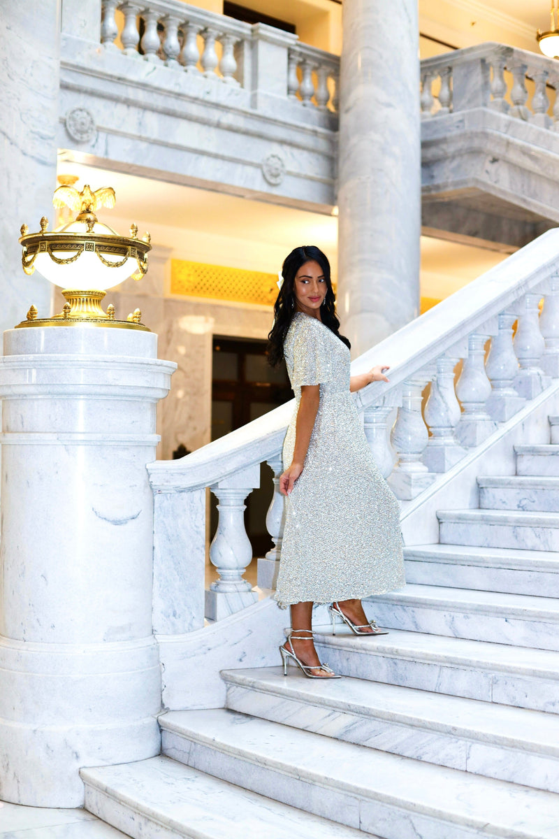 Ready to ring in the New Year with sparkle!? The Elyssa is so stunning & feminine, we know it will go fast! Featuring a round neckline, short flutter sleeves and the loveliest skirt we can not wait to twirl! Get yours today!