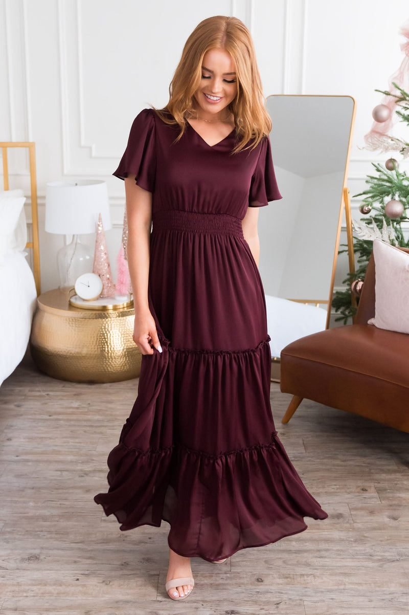 If you love our Eden dress you will absolutely love our new Mia dress. This dress features all the same features as the Eden dress! Features include; Soft V-neckline, gorgeous short flutter sleeves, a flowy ruffle tier maxi skirt, what more can we say?! This beauty has stolen our hearts! This dress is also fully lined except for those lovely flutter sleeves and has a shirred elastic waistband.